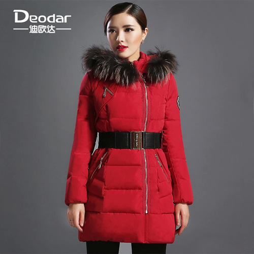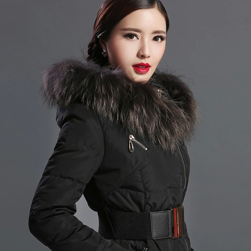 迪歐達貉子毛領中長(zhǎng)款修身羽絨(róng)服
